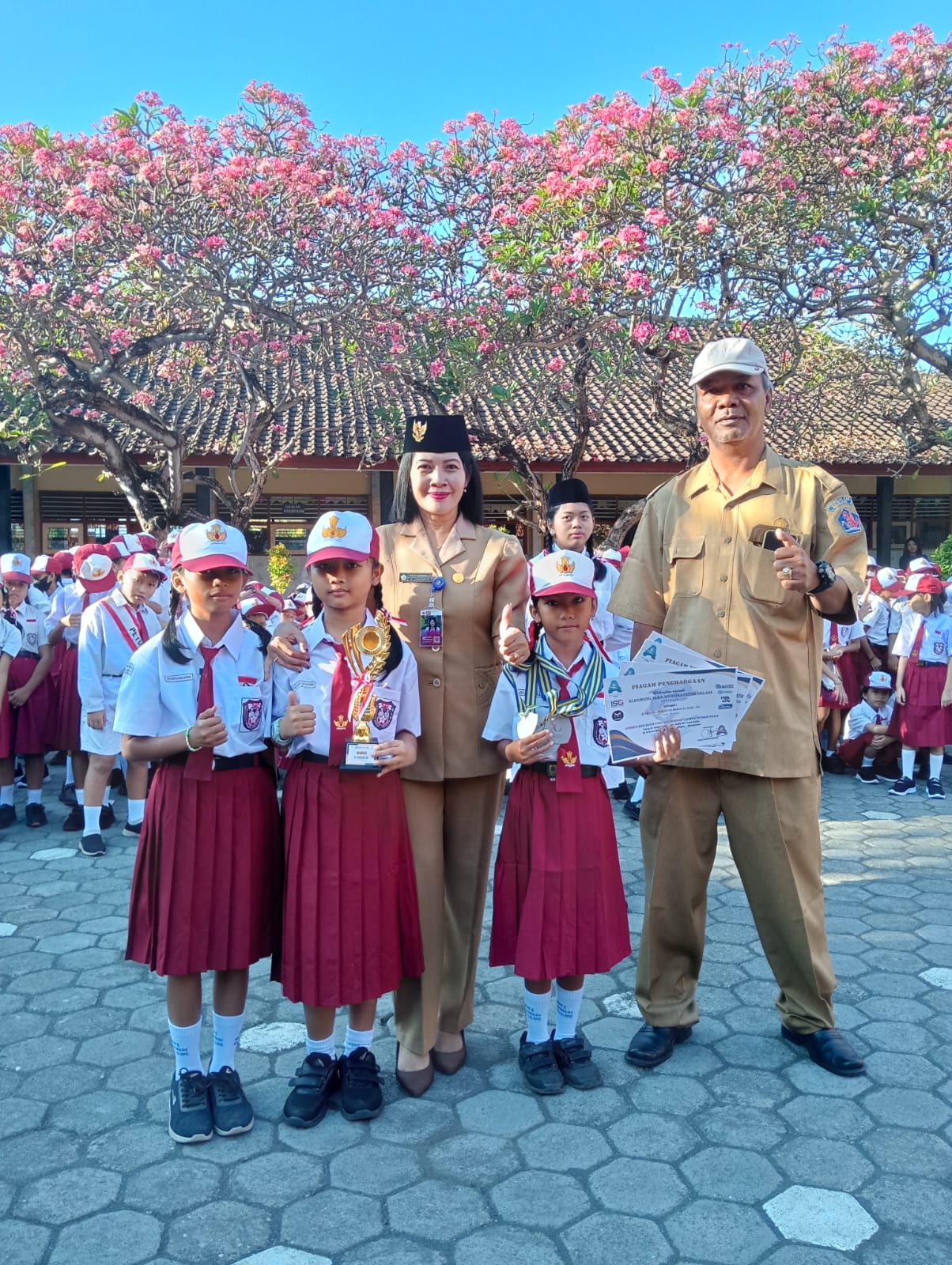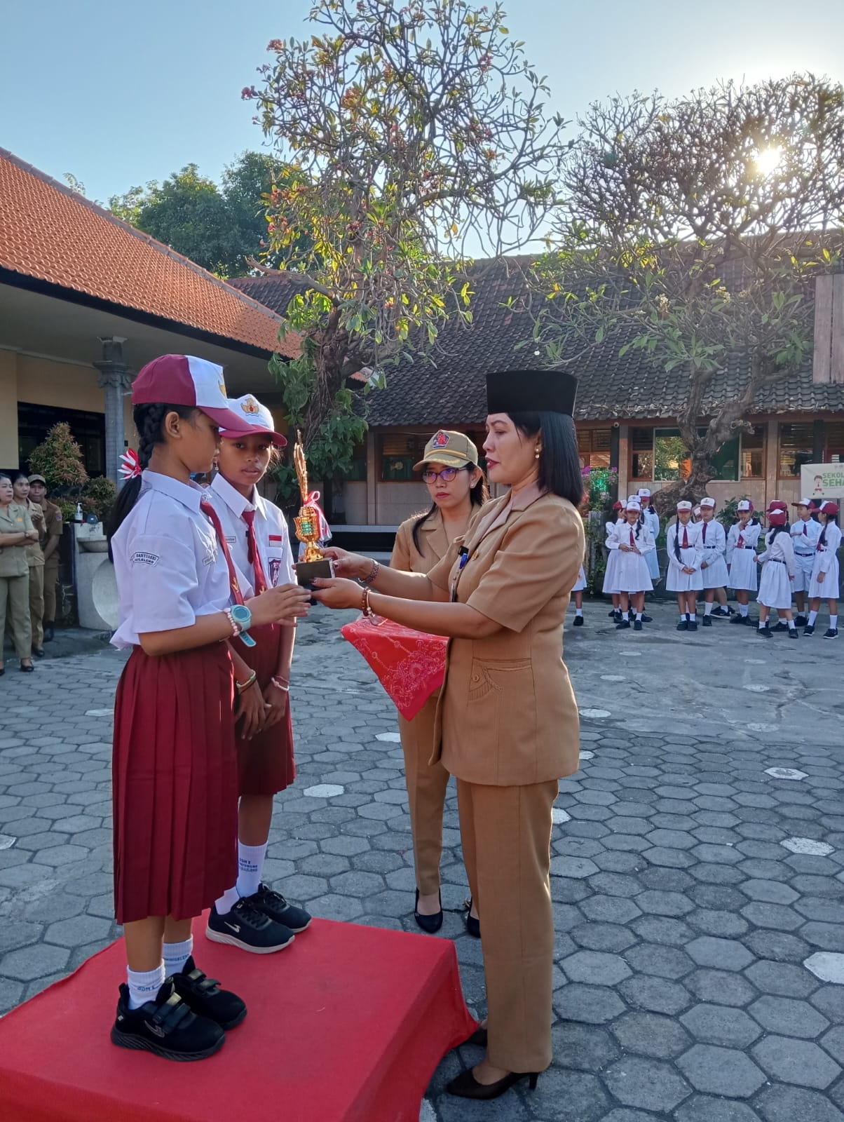 Penyerahan Piala dan Piagam oleh Ibu Kepala Sekolah Pande Made Ayu Sudarminingsih, S.Pd., M.Pd kepada siswa yang berhasil meraih juara dalam lomba sebagai berikut :